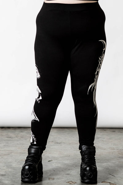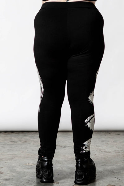 If you've got it, haunt it! Our 'Insomnia' leggings are a must-have in your wardrobe - conjured using a super-soft cotton blend with a wide waistband for a comfortable fit. Complete with contrasting graphics on both legs. These leggings are a staple piece with a twist - adds attitude to any look!