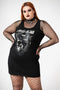 Model is 5ft 5 and wears a size XS. Model is also wearing the Hellraiser fishnet top underneath.