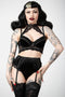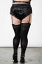 Make them beg for your attention in our ‘Mercy’ lace garter belt. Crafted in soft stretch, luxe velvet with lace trim and finished with metal rivet details and adjustable suspender straps. Perfect for play dates with the devil, dancing barefoot under the moon or a coven sleepover.