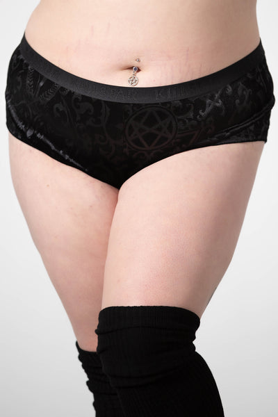 Designed with movement in mind, get in the zone in our ‘Moody’ panty. Crafted in our super strong, stretch fabric with a black-on-black statement print you’ll have the power to possess. A perfect staple for your active witch wardrobe!