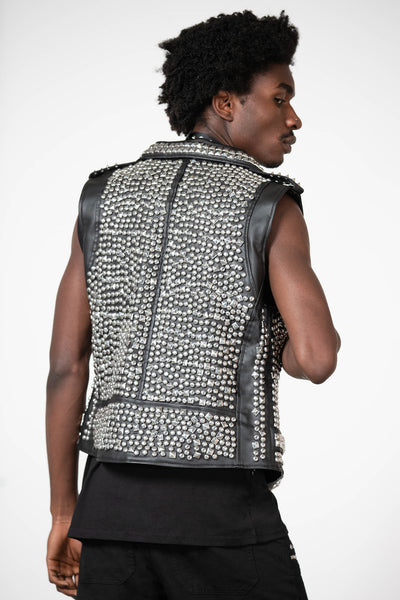 - Rad faux leather vest with hundreds of mixed elements spikes and studs in soft A-grade PU Leather